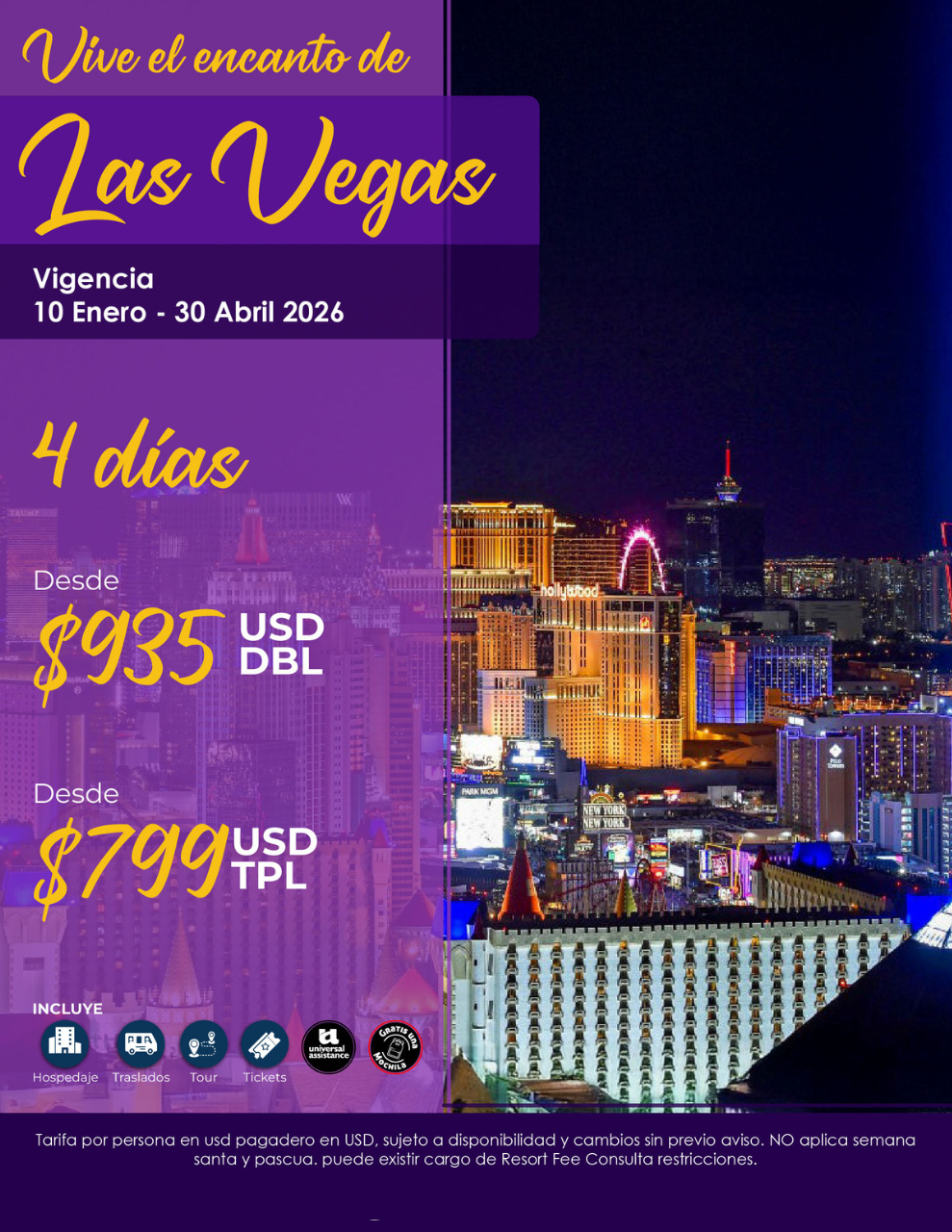 DESDE 4599 USD BASE DOBLE