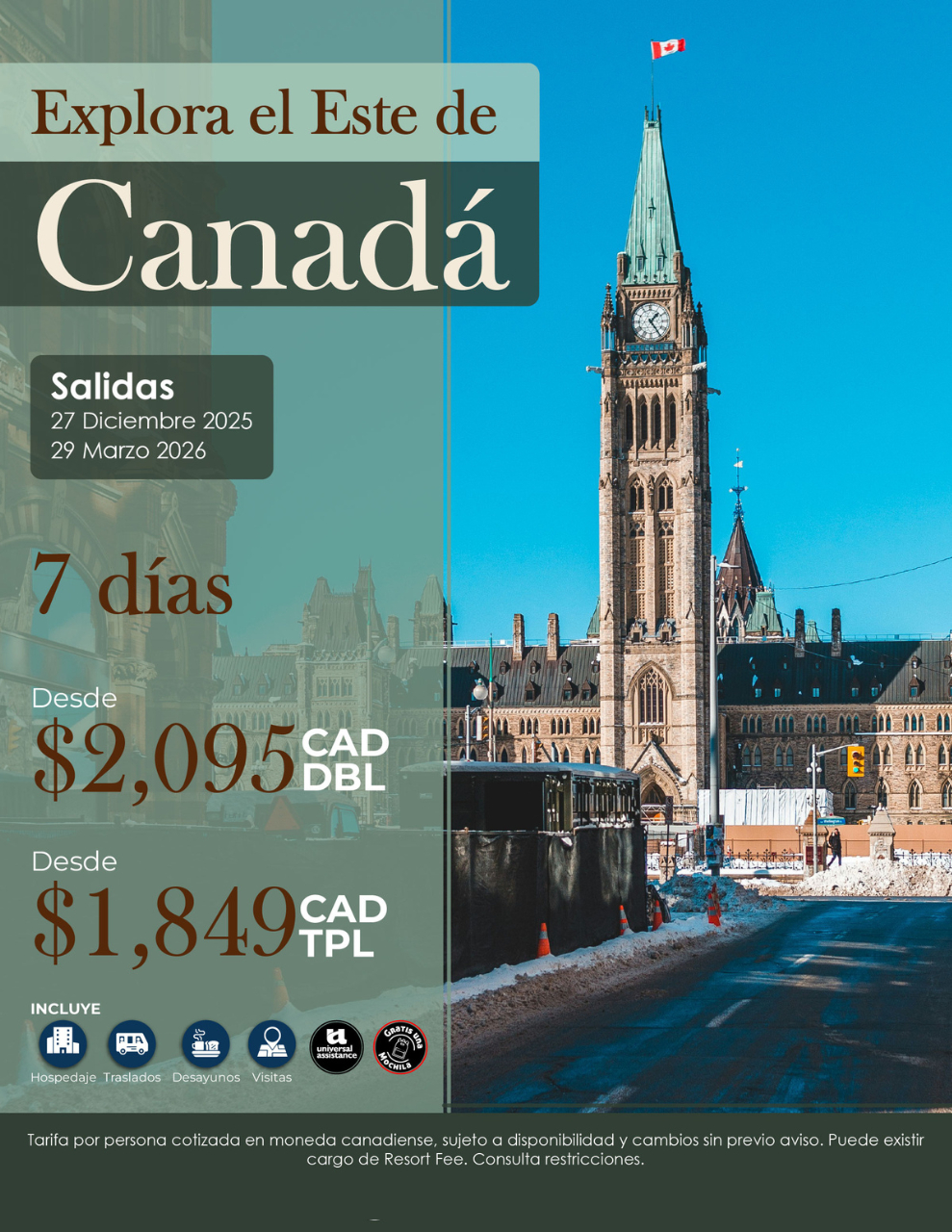 DESDE $2,095 CAD BASE DOBLE